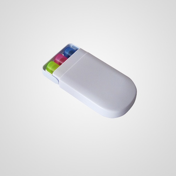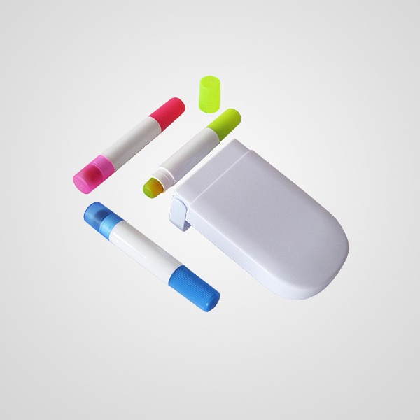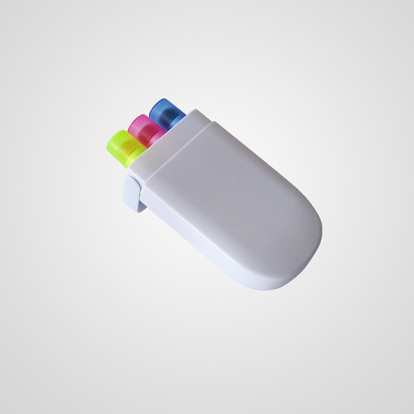 Set de 3 resaltadores de gel en estuche con cierre a presión.