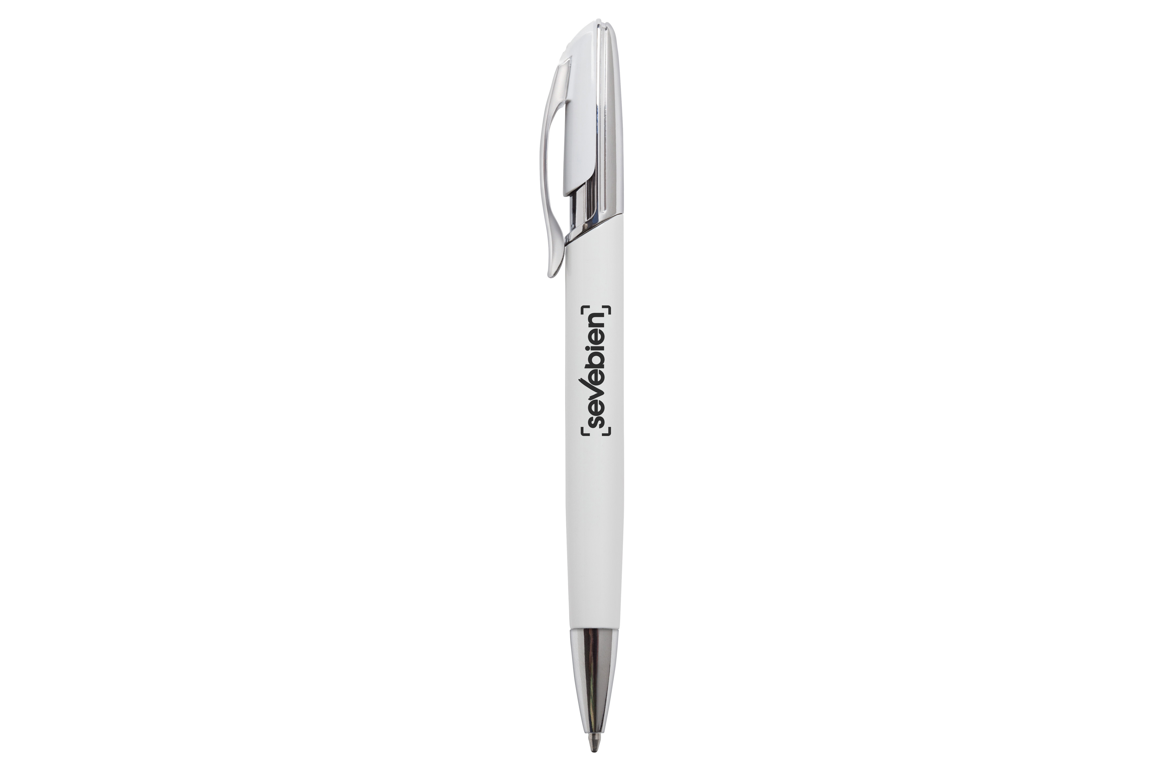 Aluminio. Cuerpo en aluminio opaco. Pulsador y puntera plásticos color plata brillante. Clip metálico.Tinta negra. Electroplateado.