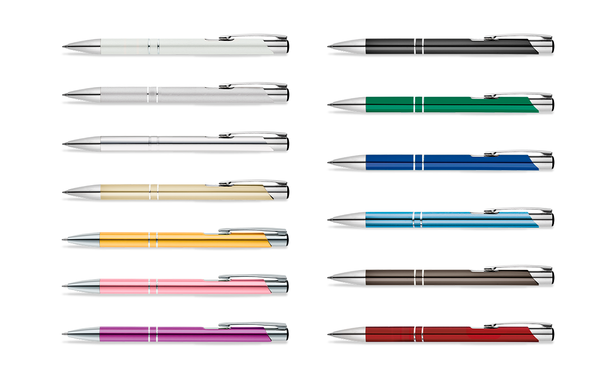 Bolígrafo fabricado en aluminio, con clip y retráctil metalizados. Disponible en una amplia gama de colores.