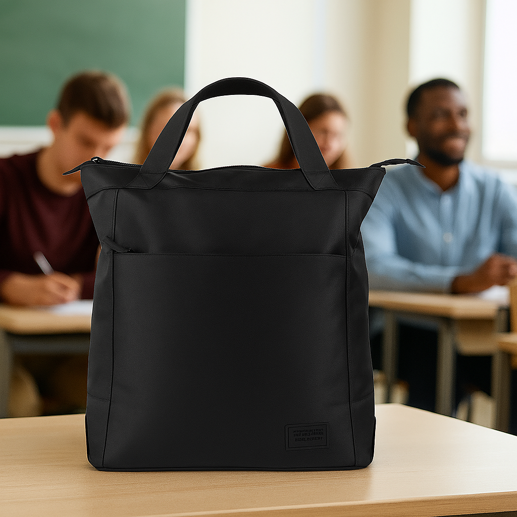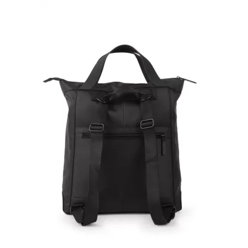 Bolso tote confeccionado en Polyester con cierres en tono y cabezal negro. Cuenta con un compartimiento principal amplio que posee un espacio porta notebook 14” y otro más pequeño para la agenda, sujetados con un elástico negro. Posee un bolsillo frontal y uno trasero, ambos con cierre. Manijas de goma y correas para espalda regulables, para que la utilices de la forma que más te guste. Ideal para llevarla al trabajo o facultad. Dimensiones: 39 x 34 x 13 cm (Alto x Longitud x Ancho). Capacidad: 13L. Cardon.