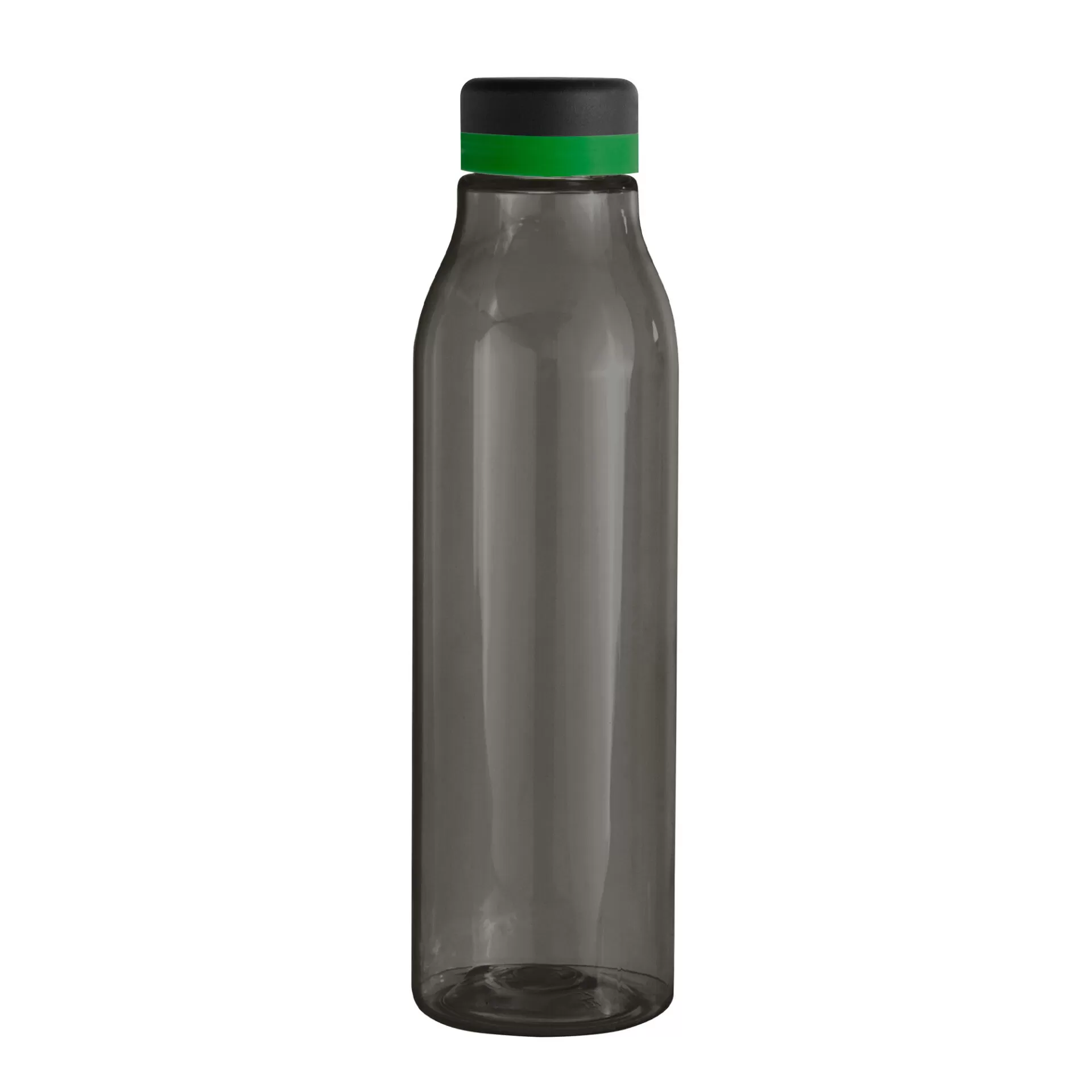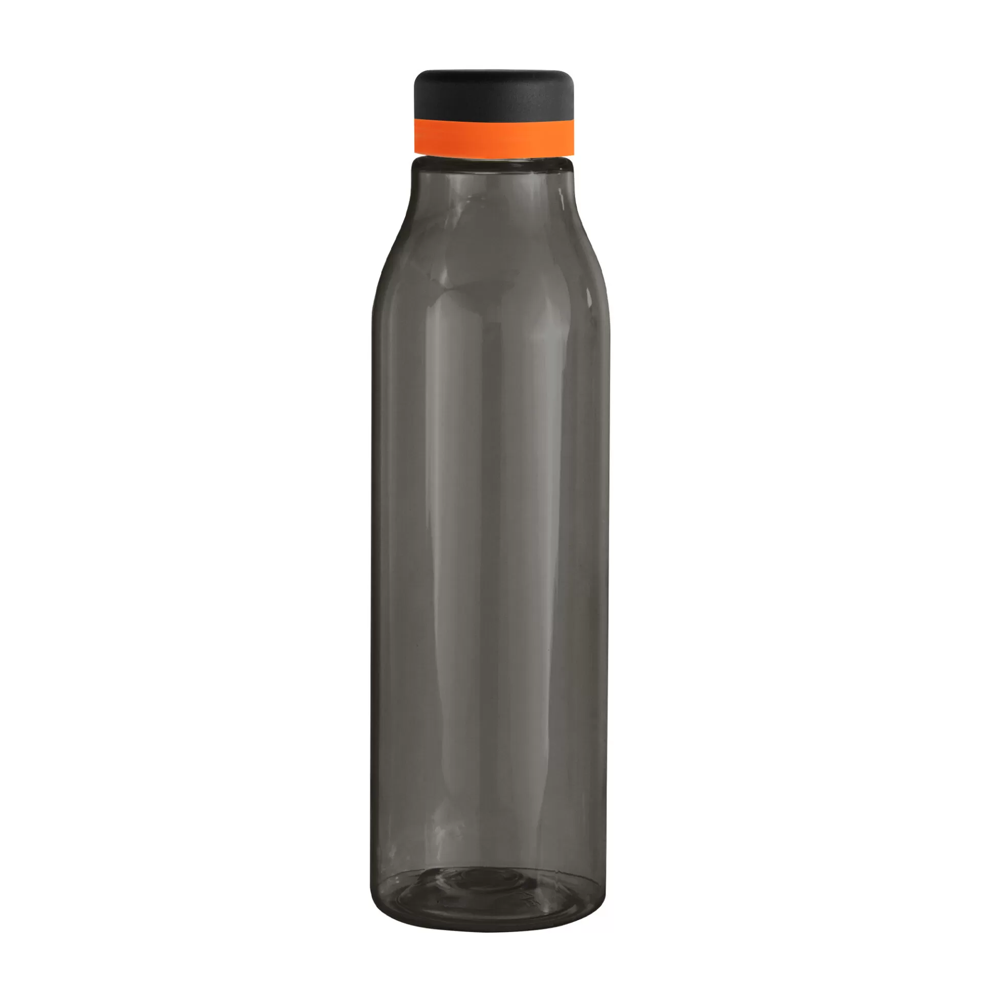 Única en su estilo.Botella de plástico color negro con tapa a rosca color negro mate con anillo de silicona de diferentes colores.Medidas: Ø 7 x 24,5 cm.