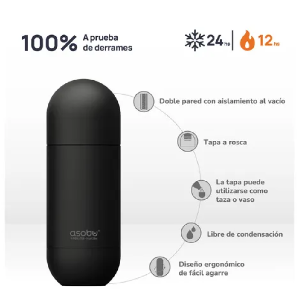 Nunca viste una botella como esta. La ORB es la botella perfecta para mantener el agua fresca y el café bien caliente durante todo el día. Su forma única es elegante y fácil de llevar a todos lados, mientras que su tapa a rosca también puede ser usada como taza. La ORB está disponible en una amplia gama de colores ¡ideal una para cada outfit! Producto Original.Garantía de por vida. Certificado por ANMAT