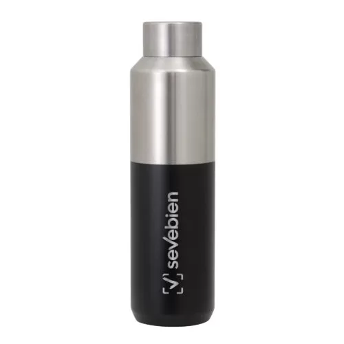 Aislamiento Superior para Bebidas Calientes y Frías.Botella doble pared, sellada al vacío. Interior de acero 304 y exterior de acero 201. Tapa a rosca de acero 201 con anillo de silicona. Pintura acabado mate en parte inferior. Mantiene por más de 12 hs la temperatura de las bebidas calientes y 24 hs de las bebidas frías. Medidas: Ø 7 cm x 24,5 cm.