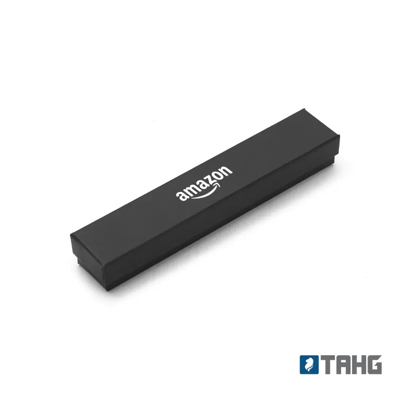Caja individual para bolígrafos, ideal para presentar tu regalo de manera sofisticada y profesional. Diseñada en papel color negro y un tamaño de 16,3 x 3 x 2 cm, es compatible con la mayoría de las lapiceras estándar. Ligera y resistente, es excelente para aumentar el valor percibido del regalo.