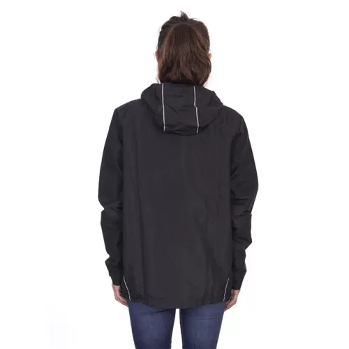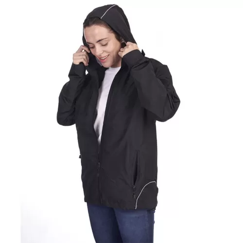 Campera fabricada en Taslan, una tela con recubrimiento impermeable y protección UV. El tejido interior es una malla 100% polyester que permite la ventilación de la prenda. Posee tres Bolsillos con cierre, dos laterales inferiores y uno lateral derecho superior y puños con regulación por velcro. En el extremo superior del cierre, posee una solapa cobertora. Regulación interna en ruedo, por cordón elástico y tanca. Posee capucha con 2 puntos de ajuste y detalles gris reflex. Recomendaciones de uso para cuidar tu abrigo: Lavar a máquina a 30°. No lavar en seco. No Blanquear. No planchar. No secar en máquina.