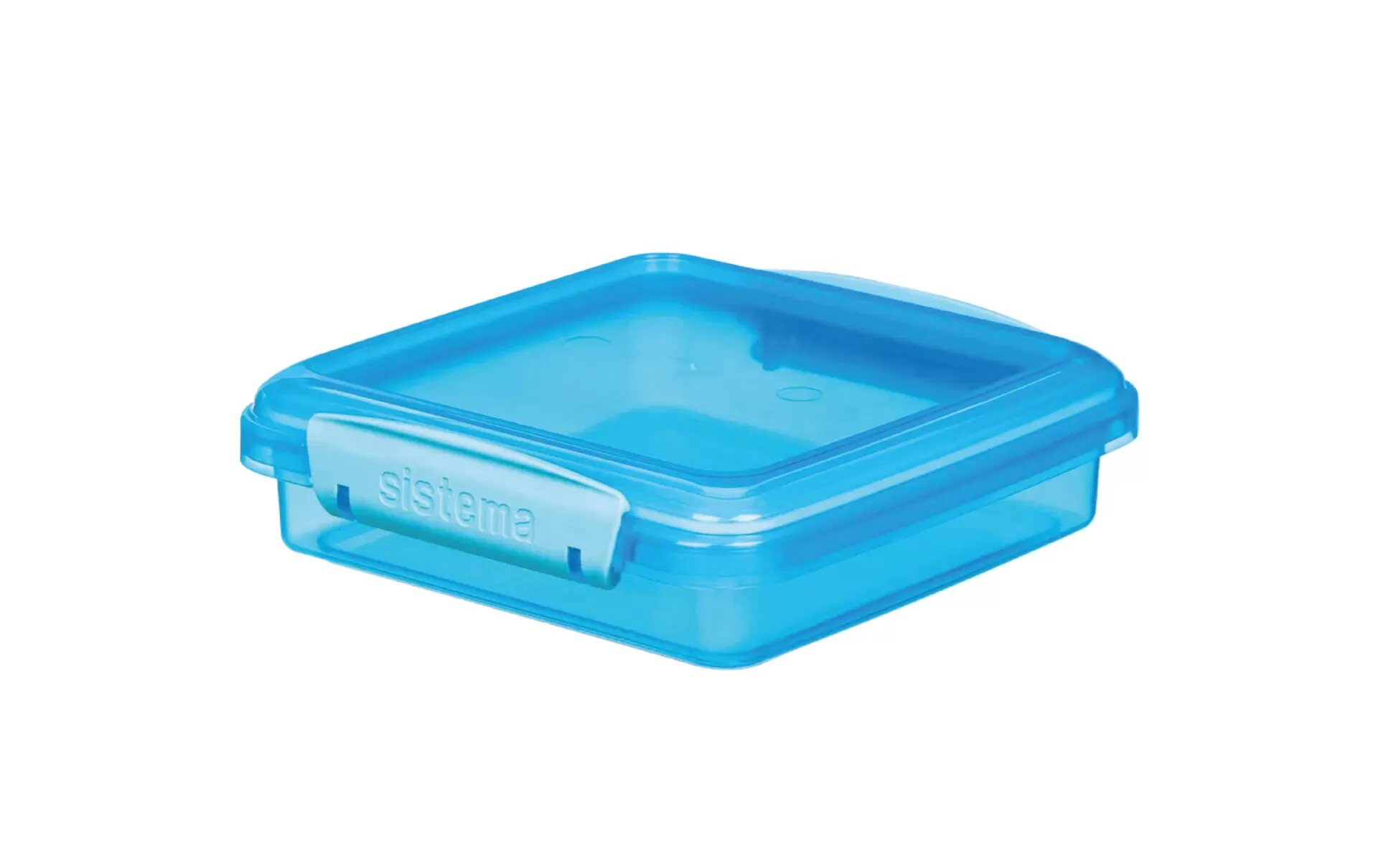 Contenedor Sistema Lunch Sandwich color Celeste de 450ml, su tamaño rectangular es ideal para llevar de almuerzo sandwichs – Contenedor desarrollado especialmente por Sistema – Sistema Klip It, dos clips en los laterales hacen que el bloqueo sea fácil y seguro – El sello interno flexible y los clips de bloqueo hacen que los alimentos permanezcan frescos por más tiempo – Sistema compacto de almacenamiento apilable ahorran espacio de almacenamiento – Apto para freezer, lavavajillas (estante superior) y microondas (sin tapa) – Capacidad 450ml – BPA y Ftalato free – Hecho en Nueva Zelanda 2108837