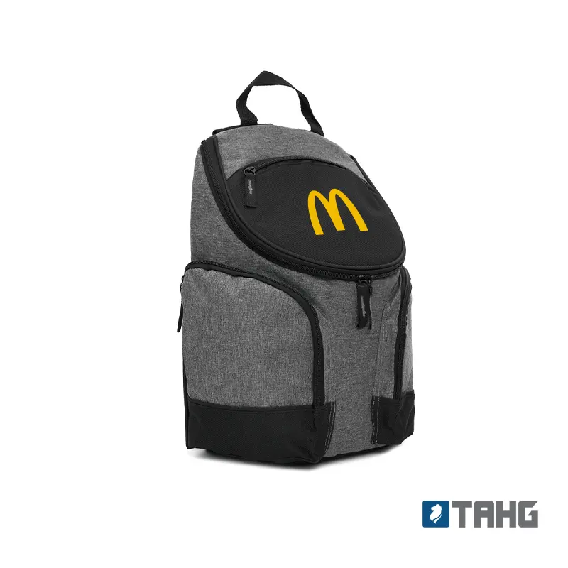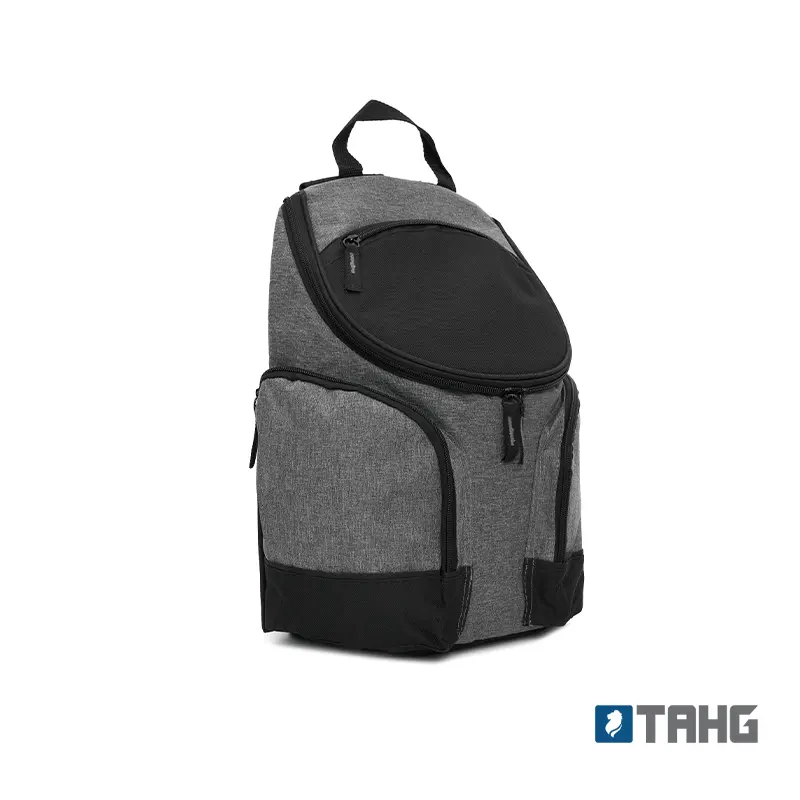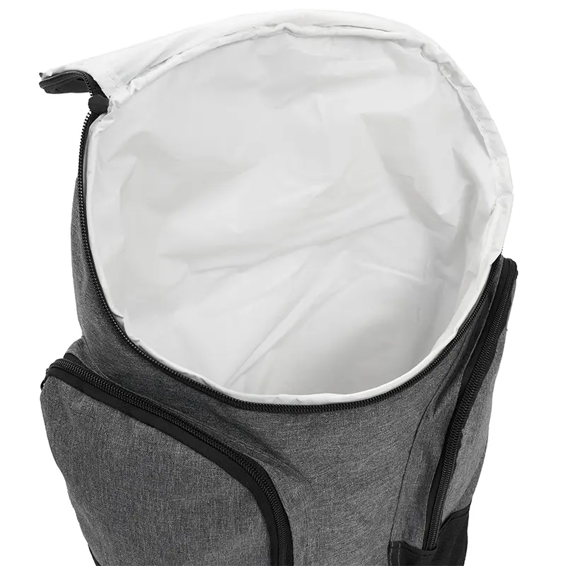 Cooler térmico con compartimientos laterales y bolsillo frontal. Confeccionada en polycanvas 600D, con interior de aluminio. Cuenta con compartimiento principal térmico con cierre, dos bolsillos laterales y bolsillo frontal en su tapa. Es ideal para guardar alimentos y bebidas en salidas, picnics o traslados diarios. Incluye correas acolchadas ajustables y manija superior.