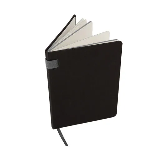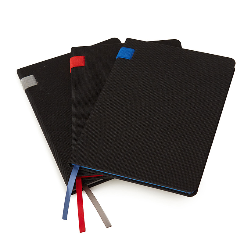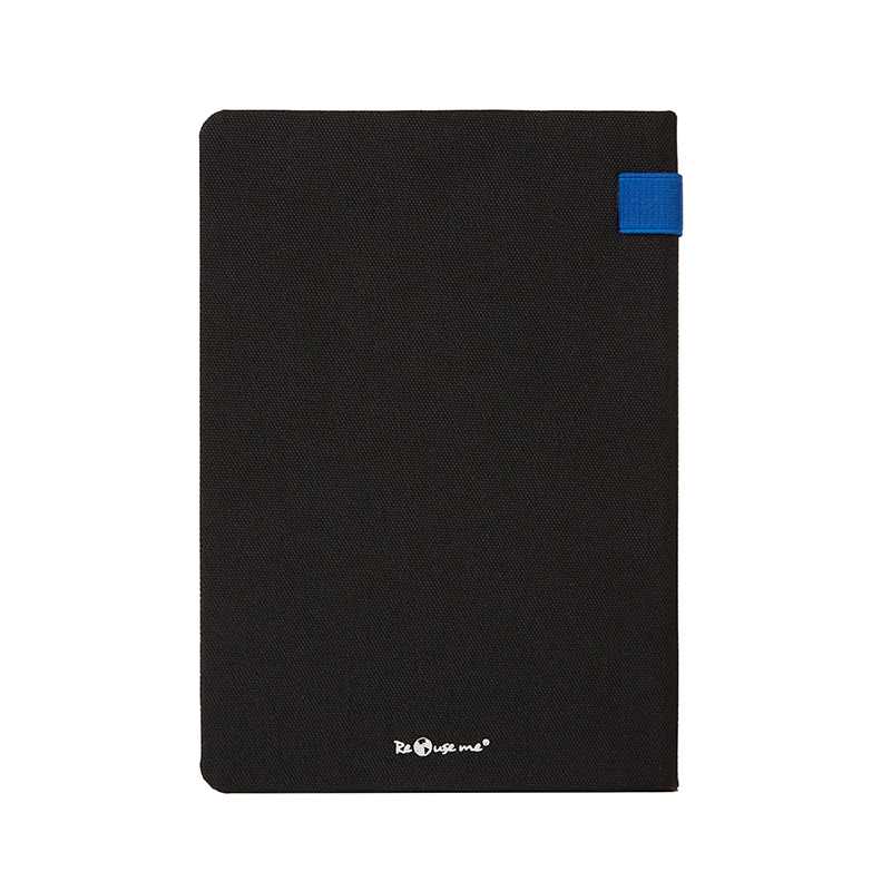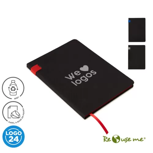 Cuaderno de tapa confeccionado con polyester RPET, hecho con botellas de plástico reciclado. Con 64 hojas lisas de Papel de 120 gramos a base de piedra, de escritura suave, más duradero y resistente que el papel tradicional. Para realizar este papel no se han talado árboles, ya que está confeccionado a partir de Polietileno y polvo de piedras. Cuenta con una cinta marcadora y borde de página de color. 64 hojas lisas de 120g. Medidas : 14,8 x 21cm. ReUseMe.