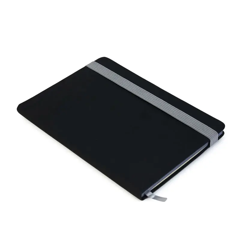 Cuaderno de tapa dura confeccionada en PVC, con 80 hojas rayadas A5 de 80gr. Cuenta con cierre elástico, cinta marcadora y canto de páginas en color.