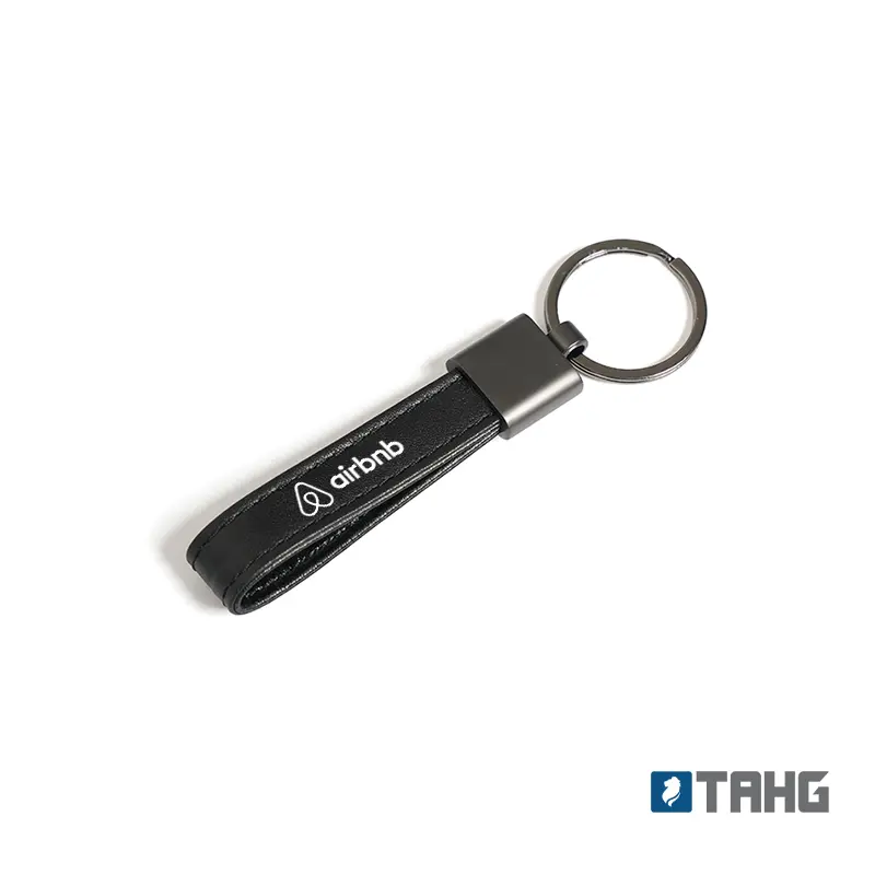 Llavero con tira de PU negra y cuerpo metálico robusto fabricado en aleación de zinc con anillo de hierro, pensado para ofrecer durabilidad y sofisticación. Cuenta con una estructura firme y anillo metálico que permite una sujeción segura de las llaves, aportando funcionalidad con diseño profesional. Es ideal para el uso cotidiano, regalos empresariales o eventos promocionales.