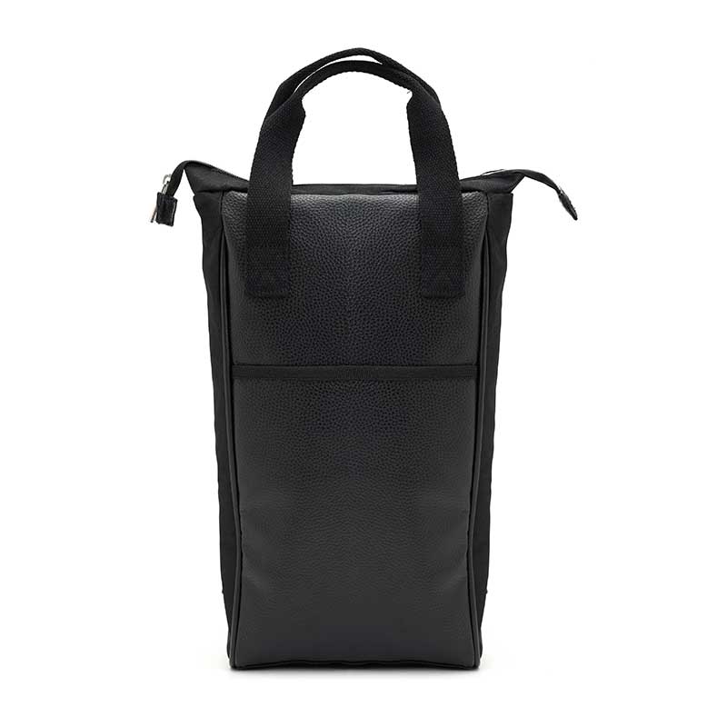 Mochila para equipo de mate Pampa Spirit, realizada en PU negro simil cuero, forrada internamente en negro. Cuenta con manijas para llevarla en una mano y correas para transportara como mochila. Tiene un bolsillo frontal tipo sobre para transportar objetos. La foto es ilustrativa, no incluye termo ni mate. Medidas: 39 x 20 x 10 cm. Capacidad: 7,5 lts. Pampa Spirit.