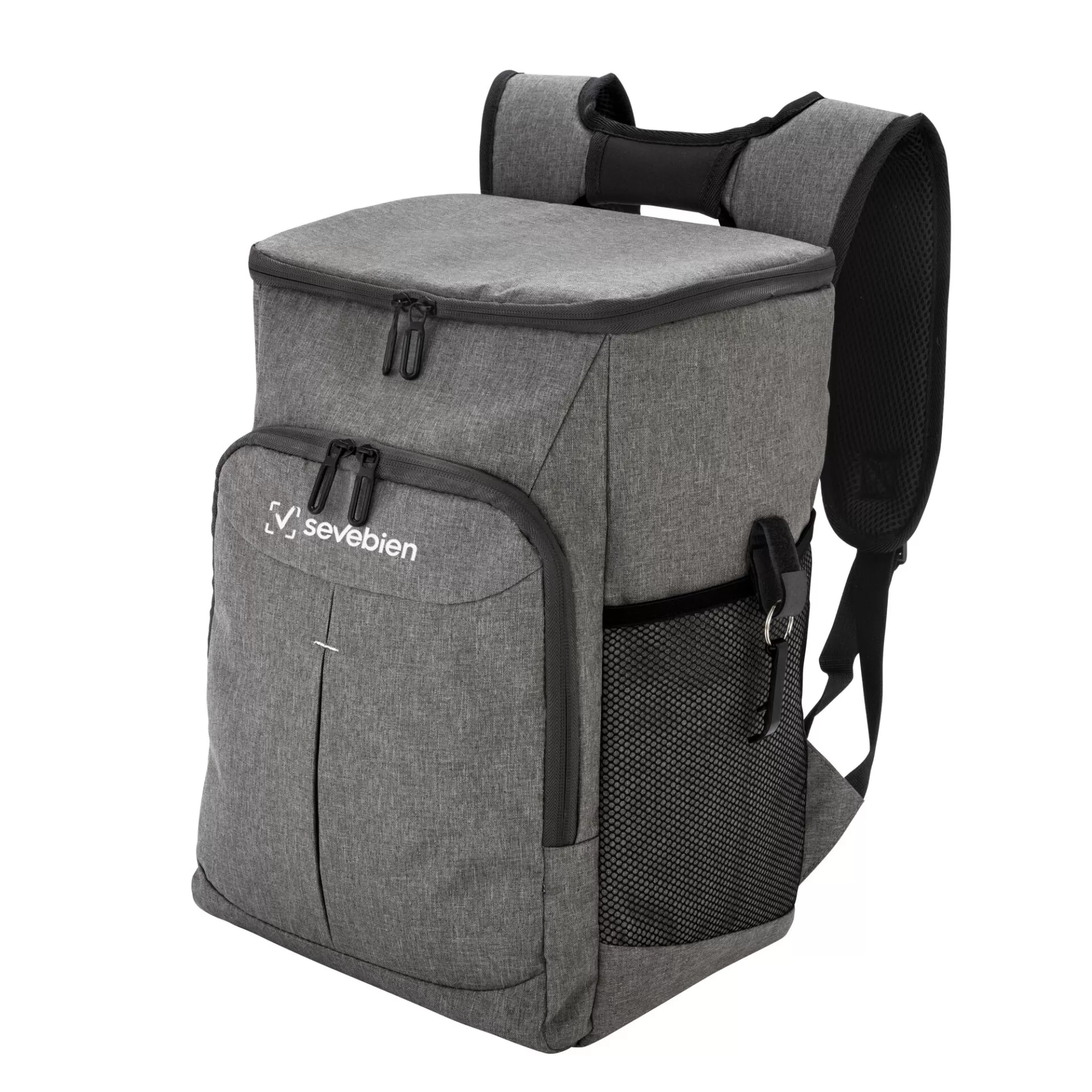 Tu mejor aliada para salidas, picnics y viajesMochila cooler. Compartimento principal con cierre en la parte superior. Compartimento frontal con cierre. Dos bolsillos laterales de red multipropósito. Incluye llavero destapador de botellas de aluminio (5,5 x 1,1 cm) extraíble. Correas regulables acolchadas y reforzadas. Cierres metálicos. Tiradores de cierre metálicos de color negro.Medidas: 40 x 26 x 19 cm.