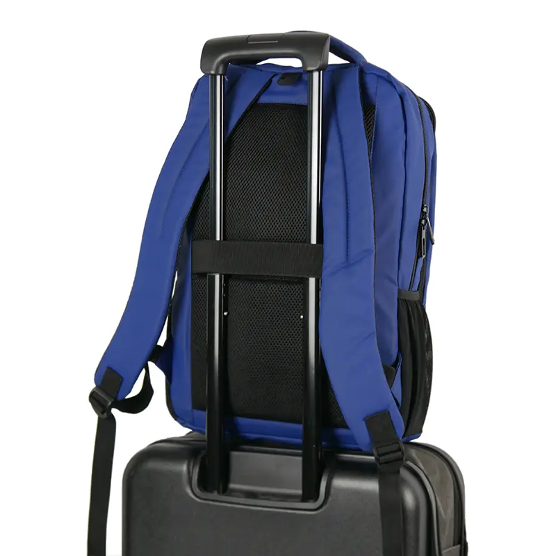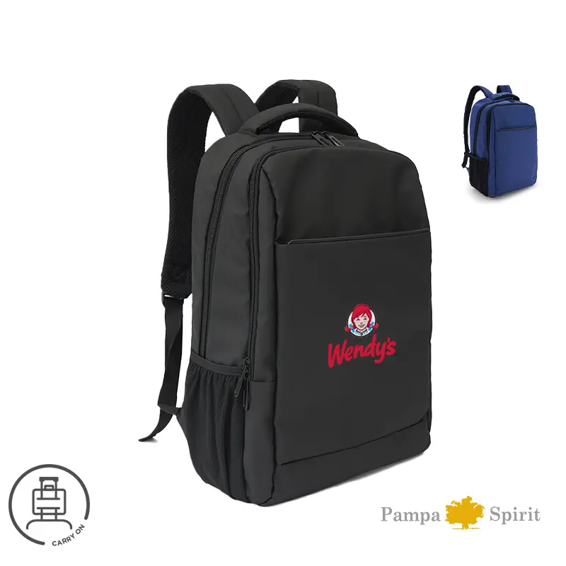 Mochila de color negro, fabricada con material PU en el exterior y espuma PE con forro completo. Dispone de un compartimento para computadora con correa elástica y velcro y otro amplio compartimento, un bolsillo frontal, dos bolsillos laterales de malla con elástico. Acomoda notebooks de hasta 15,6″. Además, cuenta con respaldo y correas acolchadas para mayor comodidad. Medidas: 44 x 30 x 11 cm. Ideal para quienes necesitan una mochila funcional y organizada para el trabajo o estudios, con espacio suficiente para llevar una notebook y otros artículos esenciales. Pampa Spirit