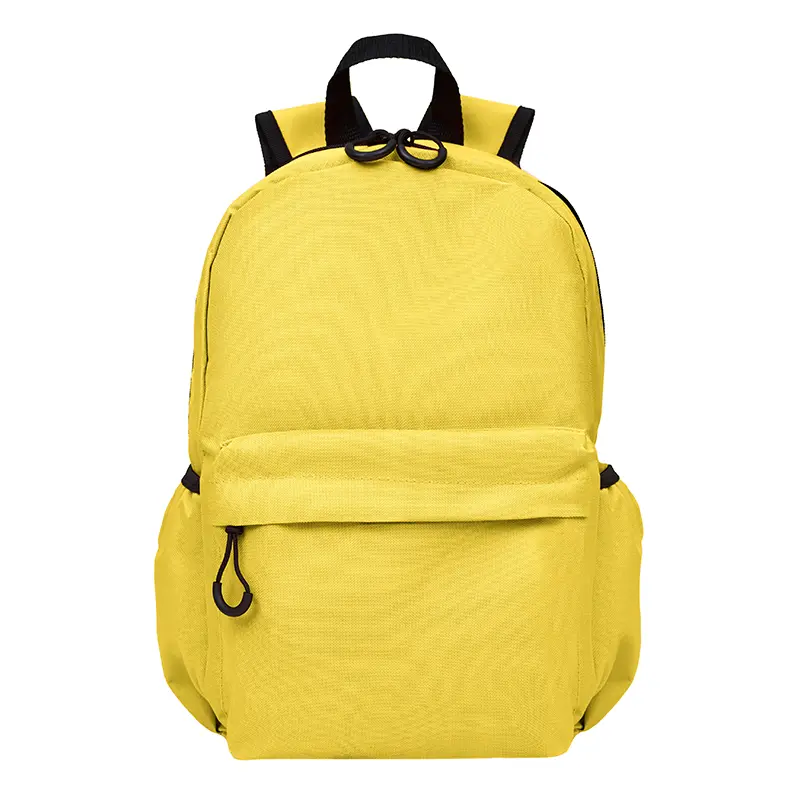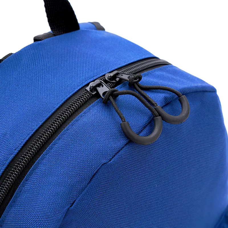 Mochila confeccionada en Polyester, con bolsillo frontal con cierre y 2 bolsillos laterales elásticos . Medidas: 42 cm alto | 27cm ancho | 12cm profundidad. Capacidad 13.5 Lts. Tahg.