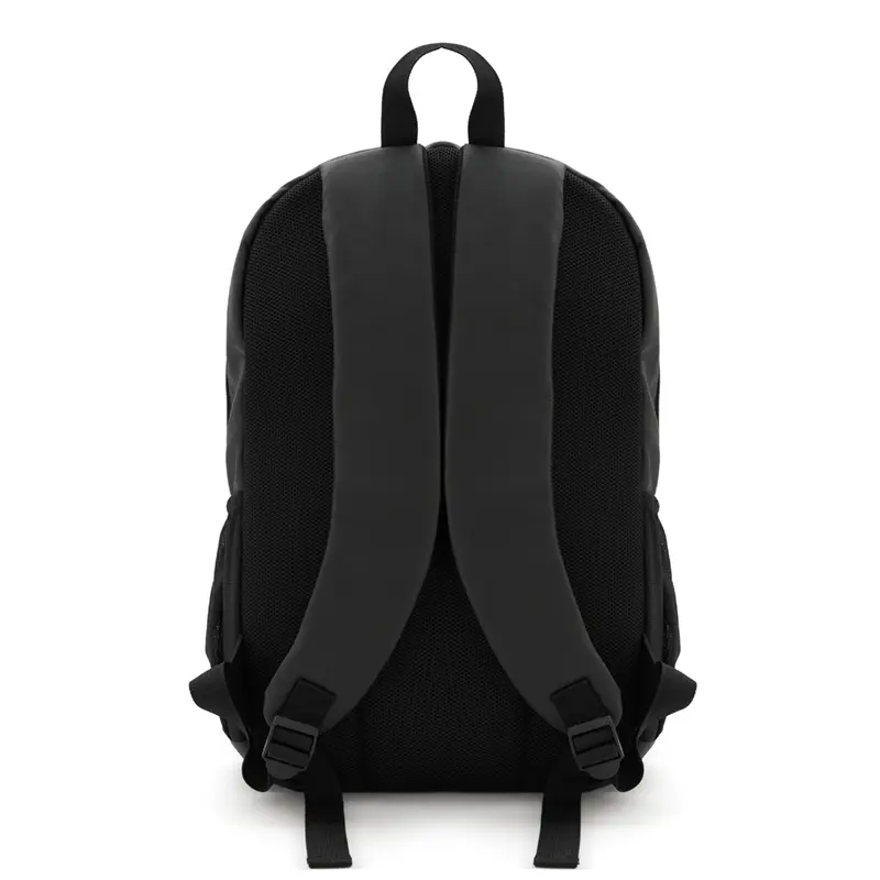 Mochila de color negro fabricada en material PU con espuma de PE y forro completo. Cuenta con un bolsillo frontal, compartimento interno para computadora con correa elástica y velcro, y dos bolsillos laterales de malla. Ideal para quienes necesitan una mochila funcional y resistente para transportar su computadora y pertenencias en sus actividades diarias. Medidas: 45 x 27 x 13 cm. Slazenger.