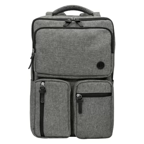 27 x 41 x 10 cm. Capacidad 12 litros. Poliéster 600D Bicolor + Nylon + PU. Mochila portanotebook de hasta 15,6 pulgadas. Compartimento principal con bolsillos acolchados para notebook y tablet con cinta elástica de velcro. 3 bolsillos delanteros con cierre y 2 bolsillos laterales. Manija y correas acolchadas, hebillas plásticas y cierres metálicos con tiradores en PU. Espalda acolchada. Incluye tira para sujetar la mochila en la manija extensible de un equipaje de mano.