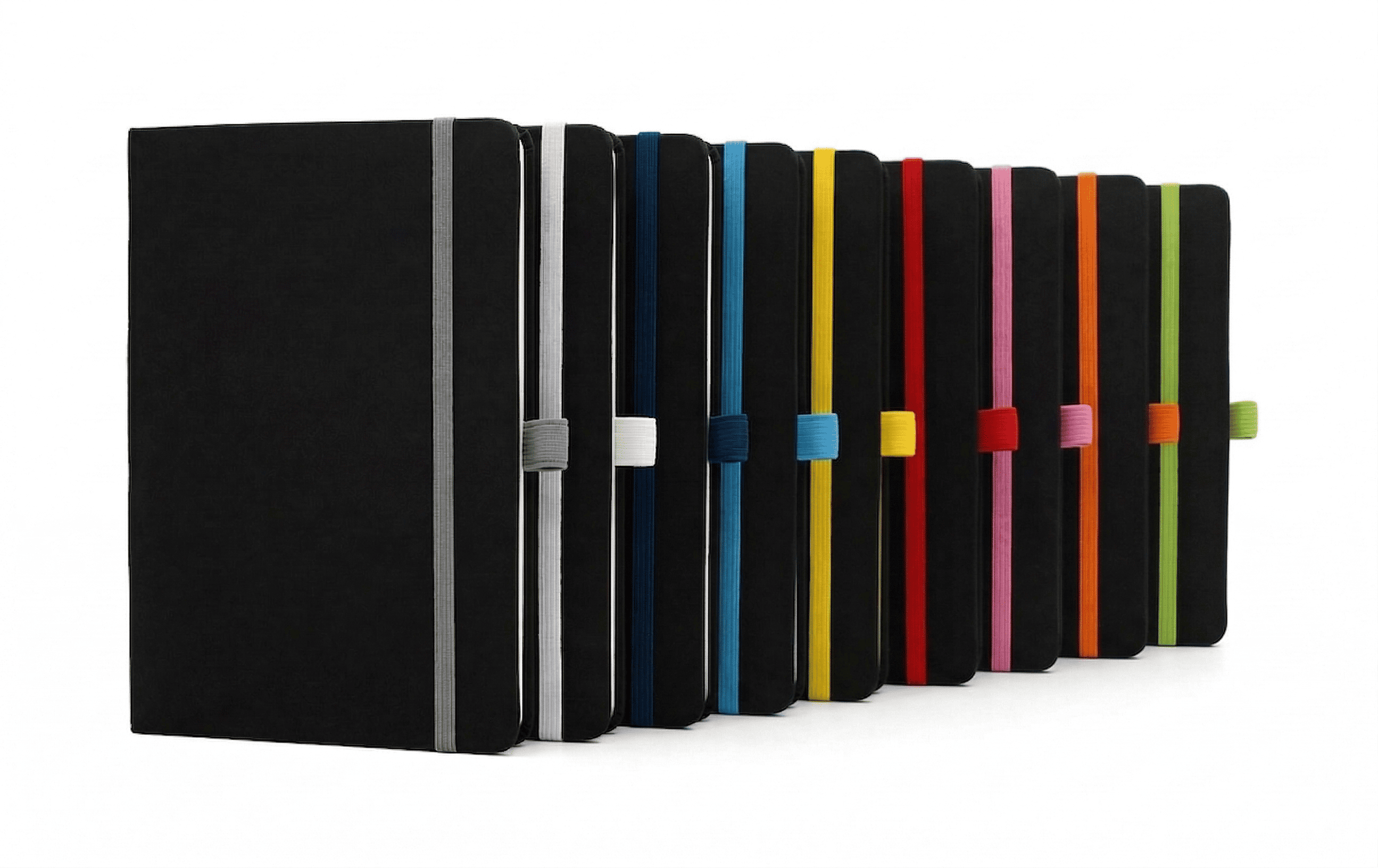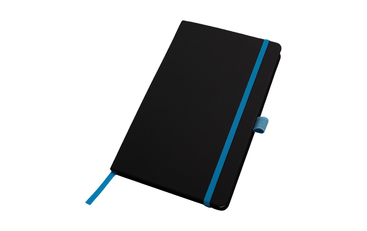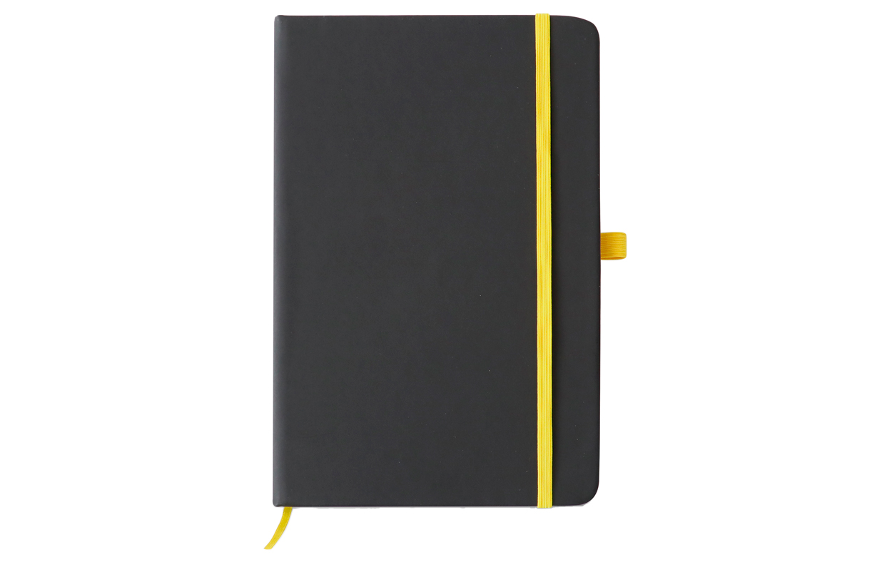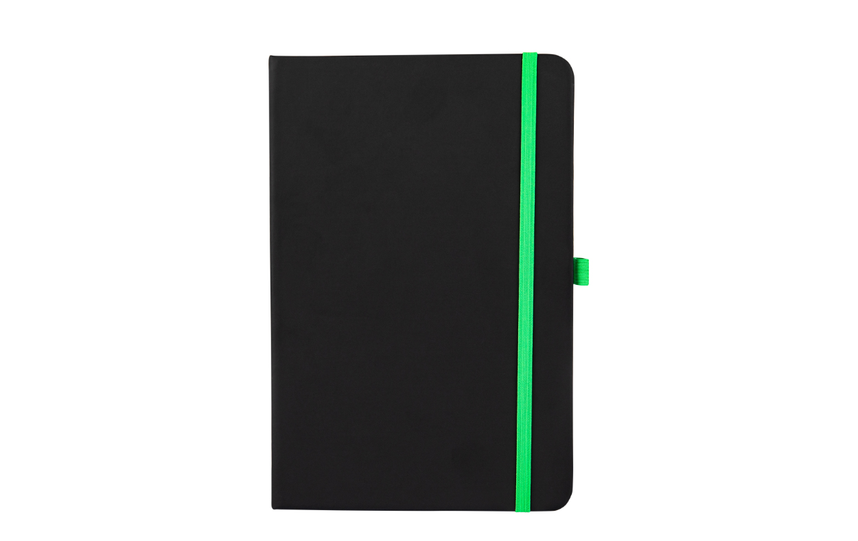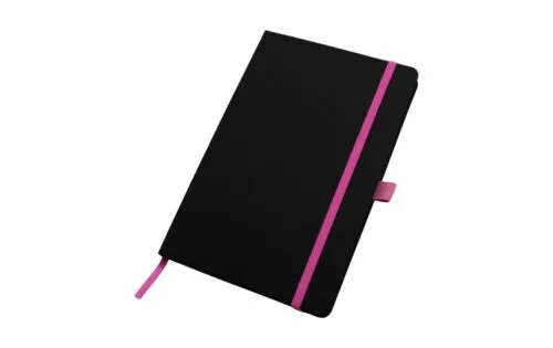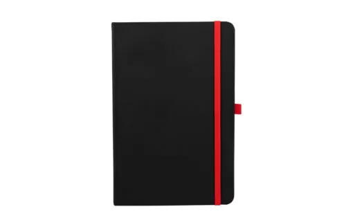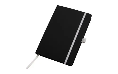 Tapa Dura Encuadernado lateral. Cantidad de hojas: 80 hojas blancas rayadas Soporte para bolígrafo, separador de tela y cierre elástico de color Ideal para eventos y kit de nuevos ingresos Material: PU