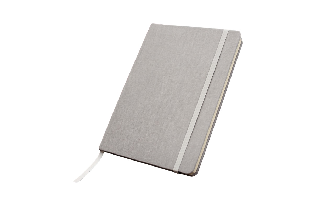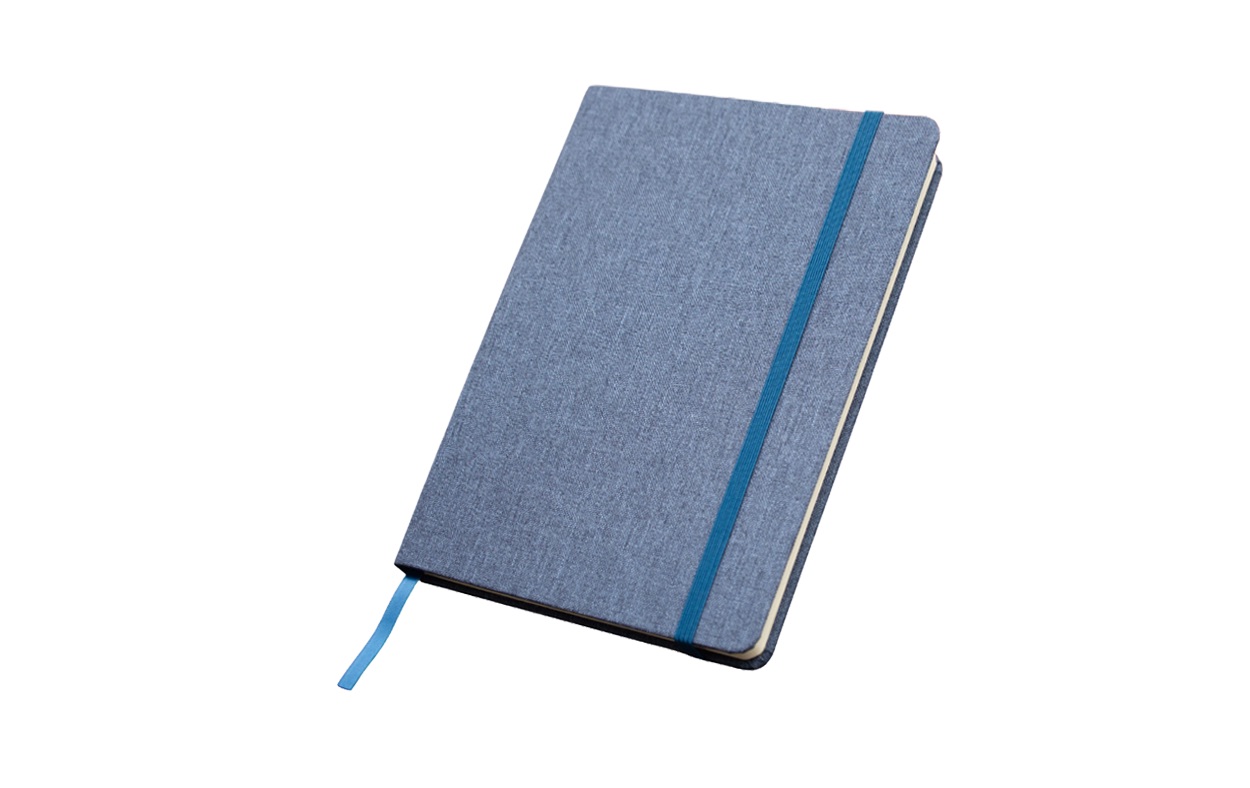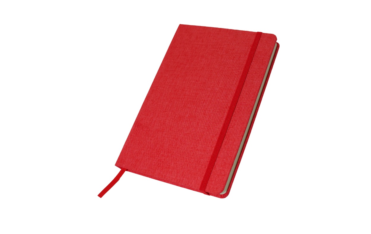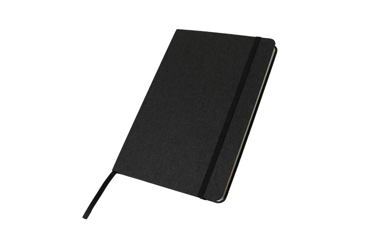 Cuaderno A5 con tapa dura hecha en material reciclado PET (50% rPET).