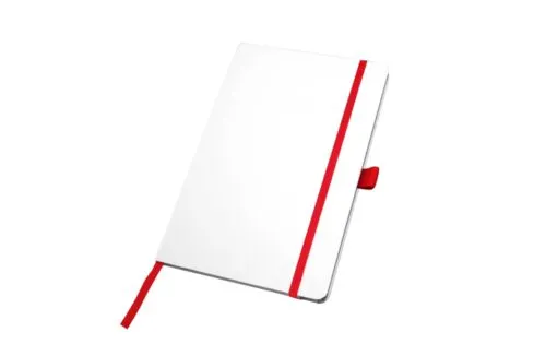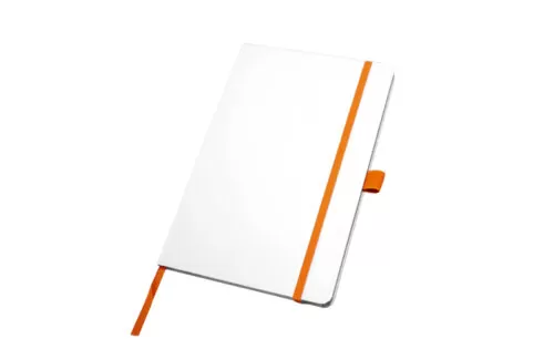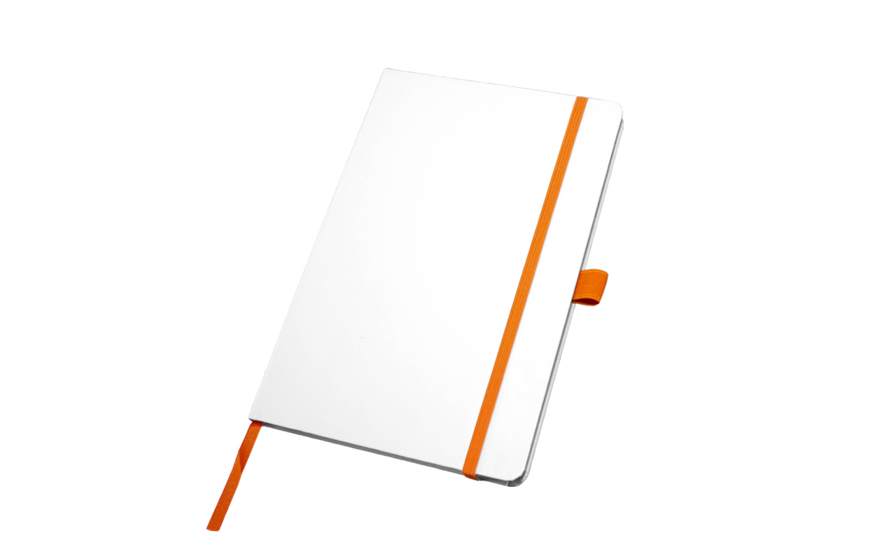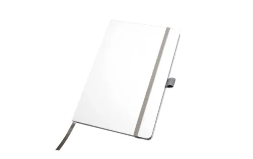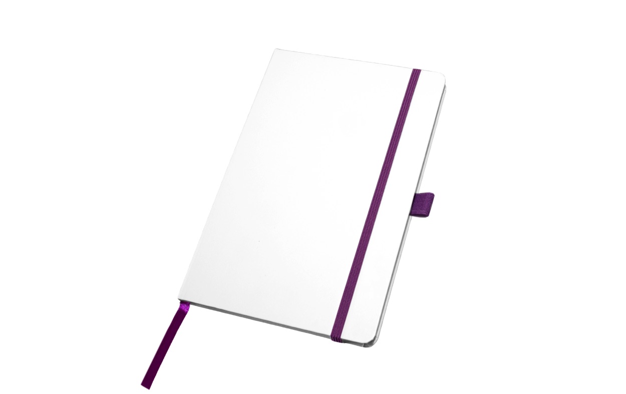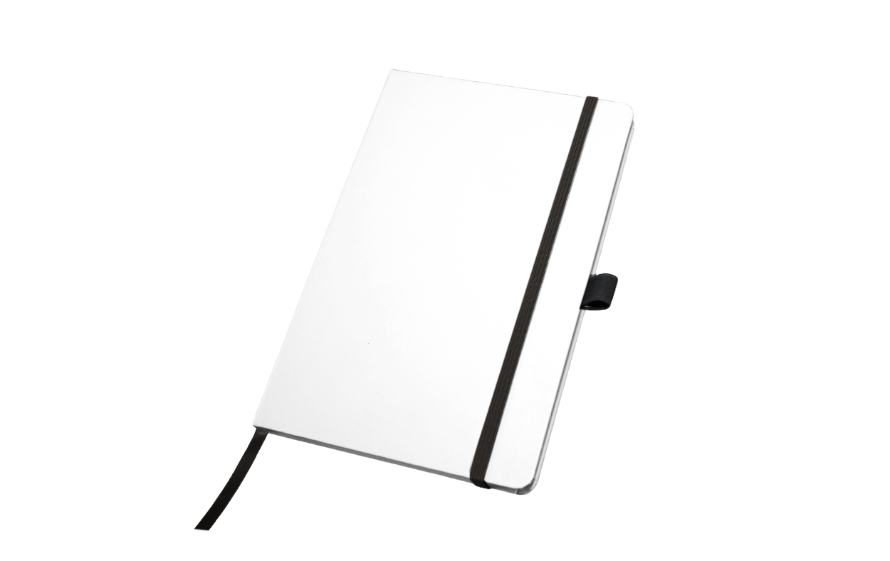Tapa dura con cubierta de PVC y cartón de 1,5 mm. Cuenta con 80 páginas rayadas color blanco + 2 páginas en blanco, cinta marcapáginas, porta lapicera y cierre elástico a color. Certificación FSC en la primera hoja. Todos los cuadernos vienen en bolsa de polipropileno individual Ideal para kits de bienvenida, capacitaciones y eventos corporativos. Papel: 70 g/m²