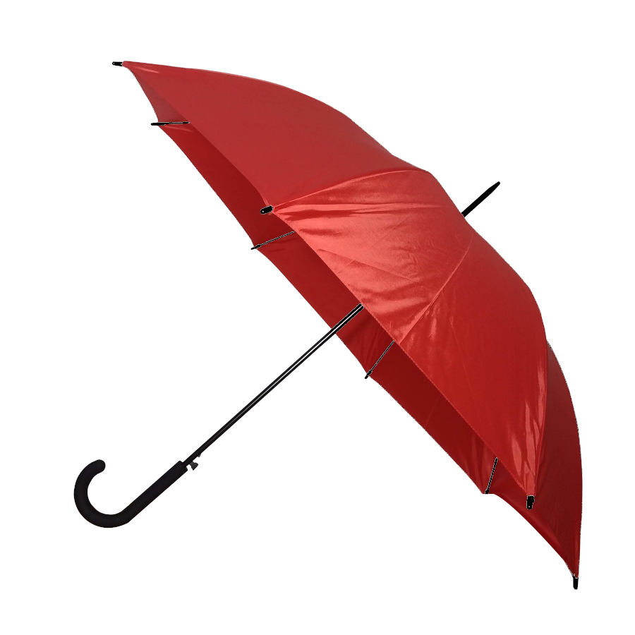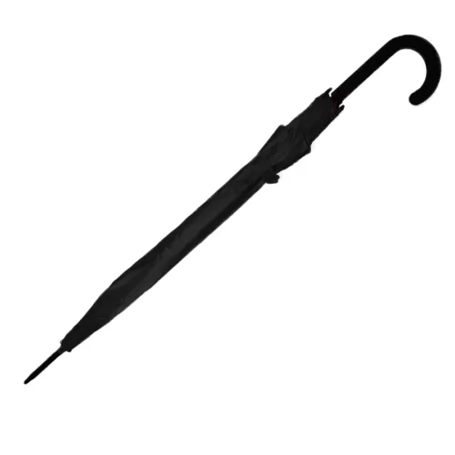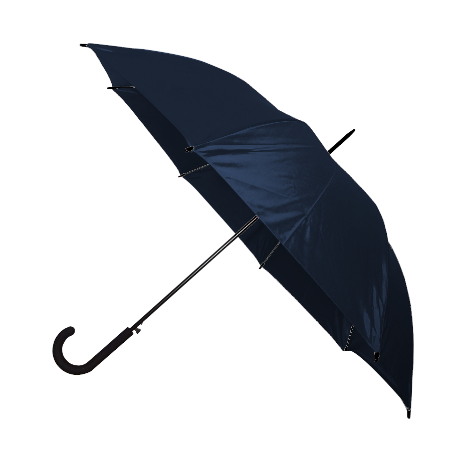 Descripción: Paraguas tipo ejecutivo de apertura automática. Mango curvo de goma. Vara principal y varillas de apertura metálicas dobles, varillas laterales plásticas, puntera metálica, terminales en plástico.