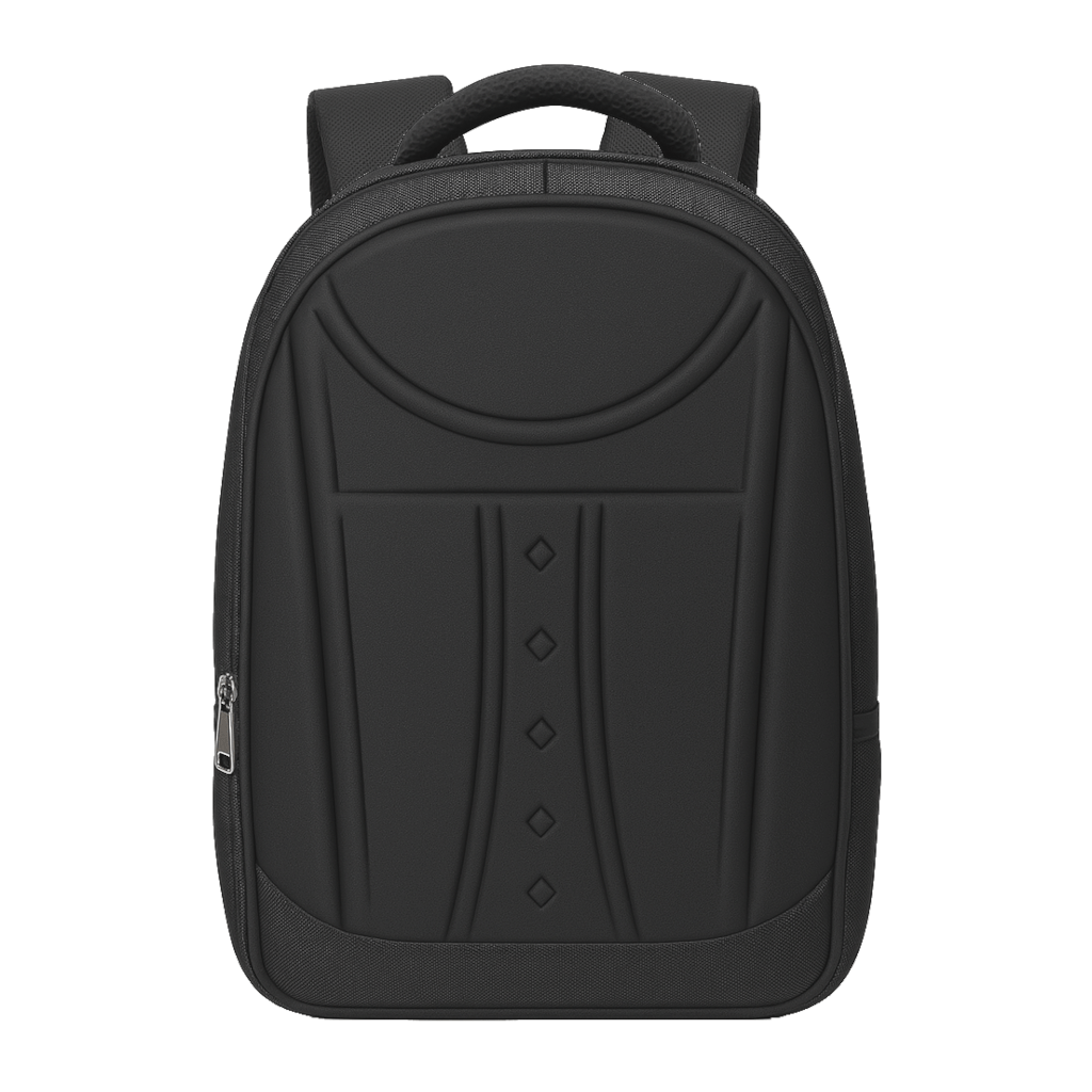 Mochila porta Notebook súper resistente e impermeable. Frente de material termoformado. Presenta dos compartimiento, el primero con un cierre simple con bolsillos porta objetos en su interior, el segundo y principal, con cierre doble que contiene sobre el sector de la espalda el bolsillo porta notebook con sujetador con velcro. Interior forrado y acolchado. Posee dos bolsillos laterales en ripstop. Manija acolchada. Correas acolchadas ajustables. Soporte de espalda anatómico acolchado y reforzado. Correa para el carry on.