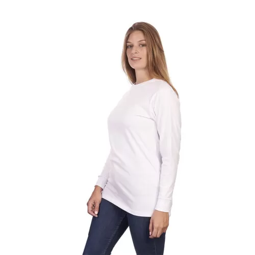 Remera de manga larga unisex en corte slim fit, con cuello redondo y puño de ribb de algodón. Esta prenda está confeccionada 100% en algodón 24/1 peinado, un recurso ecológico renovable y sostenible. Ella mide 1.68m, pesa 60 kilos y está usando talle M. Él mide 1.88m y está usando talle L. Recomendaciones de uso para cuidar tu prenda: Lavar a máquina a 30°. No Blanquear. No secar en máquina. Planchar suavemente, evitando el área estampada. ReUseMe.
