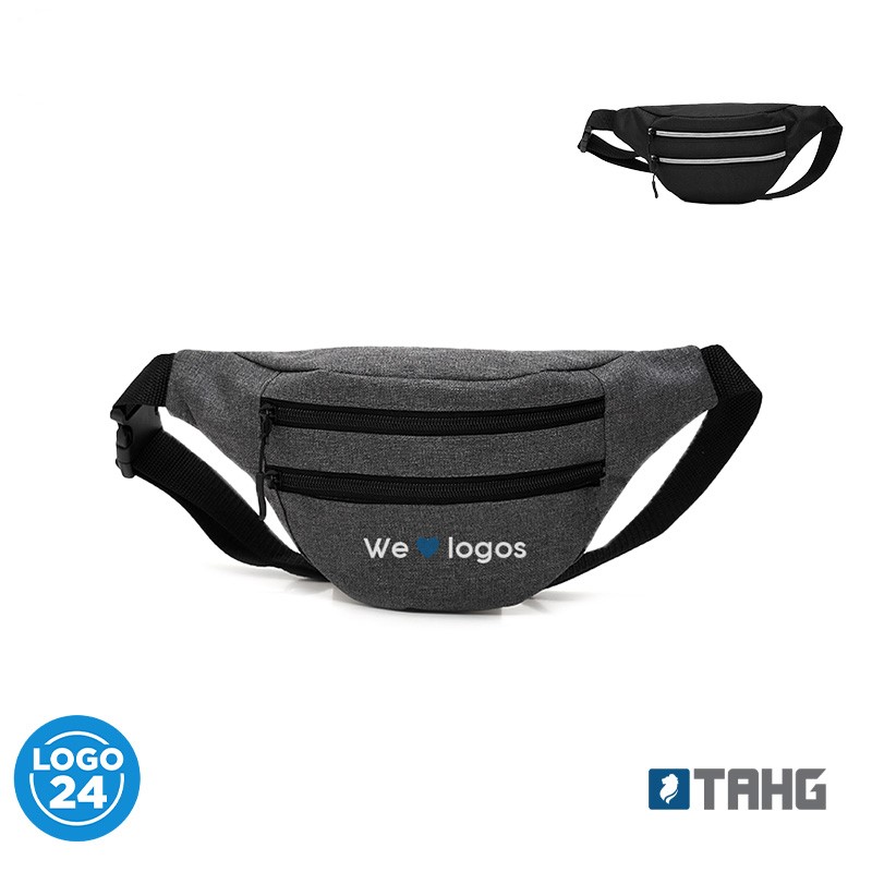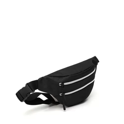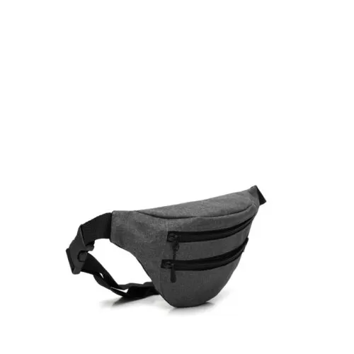 Riñonera de tela de polyester, con dos bolsillos con cierre. 30cm x 15cm. Tahg.