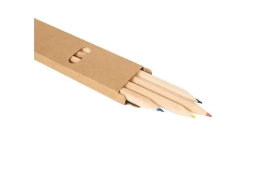 Set de 4 lápices de colores con mina de 2mm. Realizado en madera de pino y Cardboard ECO. Medidas: 18 x 3 x 0,7 cm. Re use me. Incluye Gift Box confeccionada en cartulina Kraft.