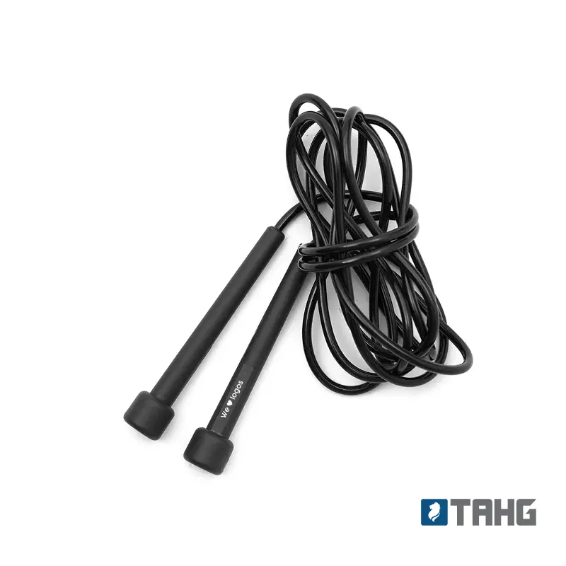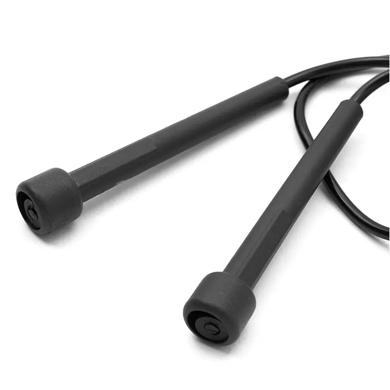 Soga de saltar fabricada en PVC (cuerda) y PP (agarre). Su largo de 2,6 metros se adapta a diferentes estaturas y niveles de entrenamiento.