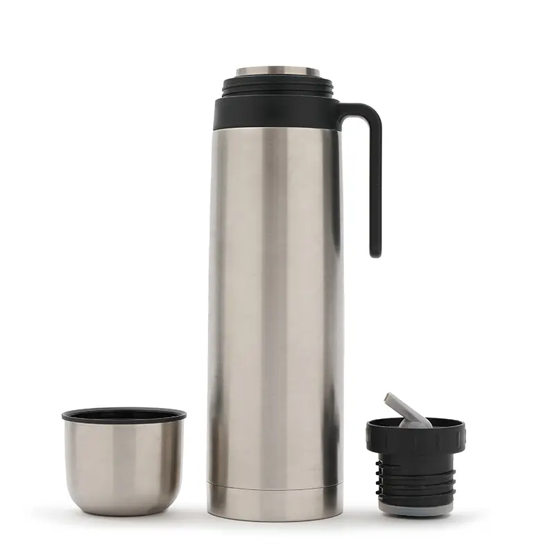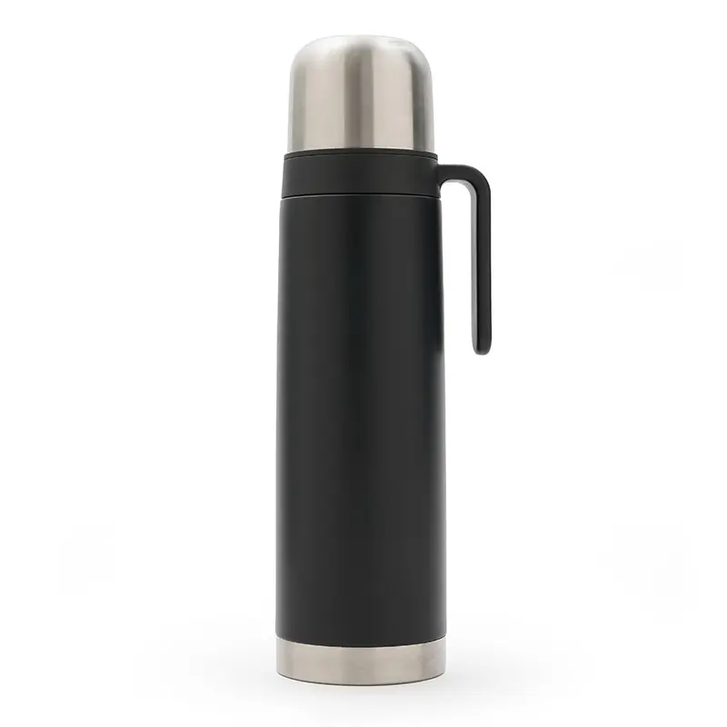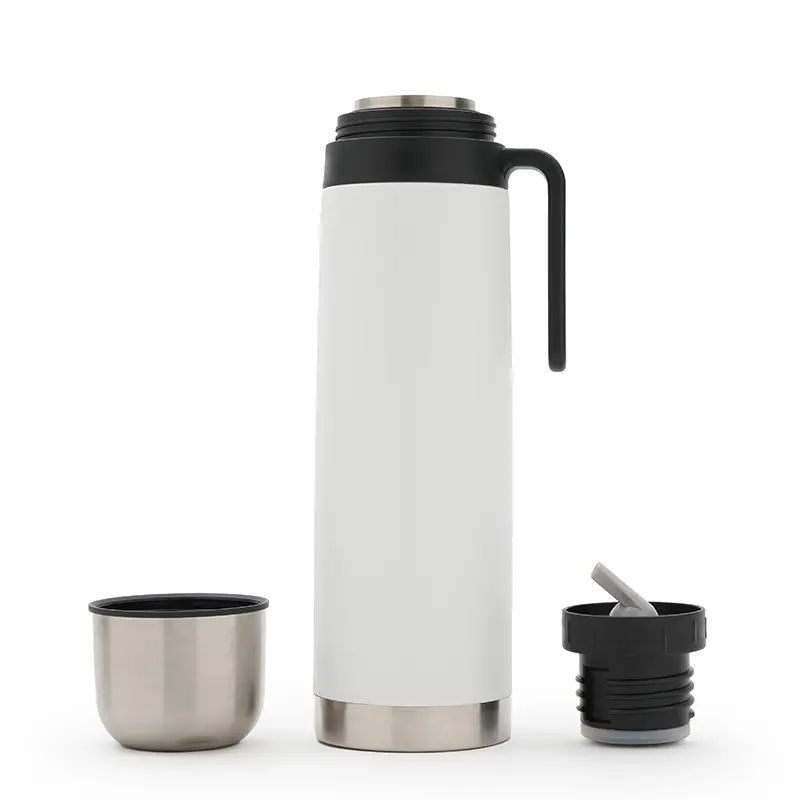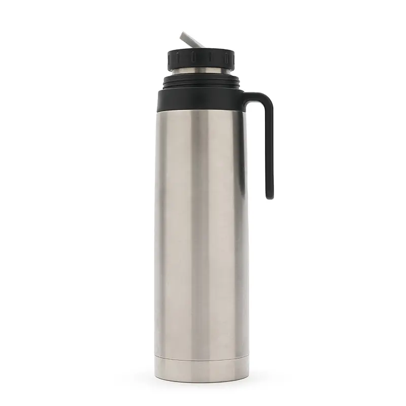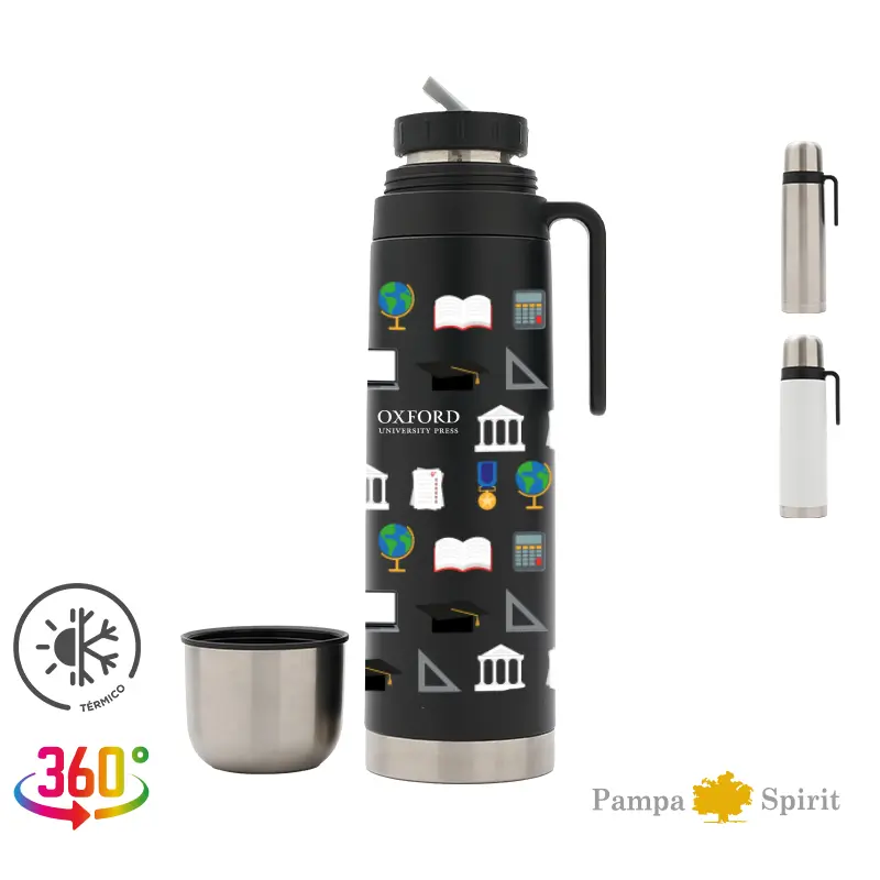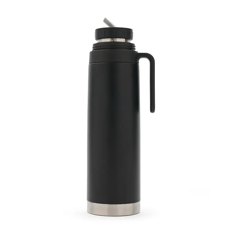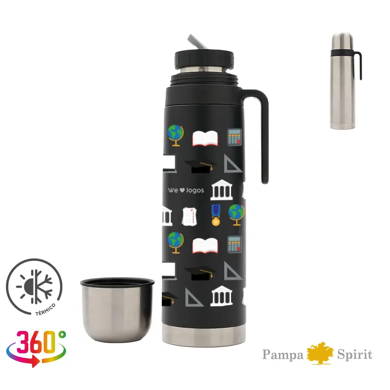 Su diseño incluye una tapa a rosca, un tapón con pico cebador y una manija ergonómica de 9,5 cm que permite transportarlo cómodamente, convirtiéndolo en el compañero ideal para el día a día o actividades al aire libre.